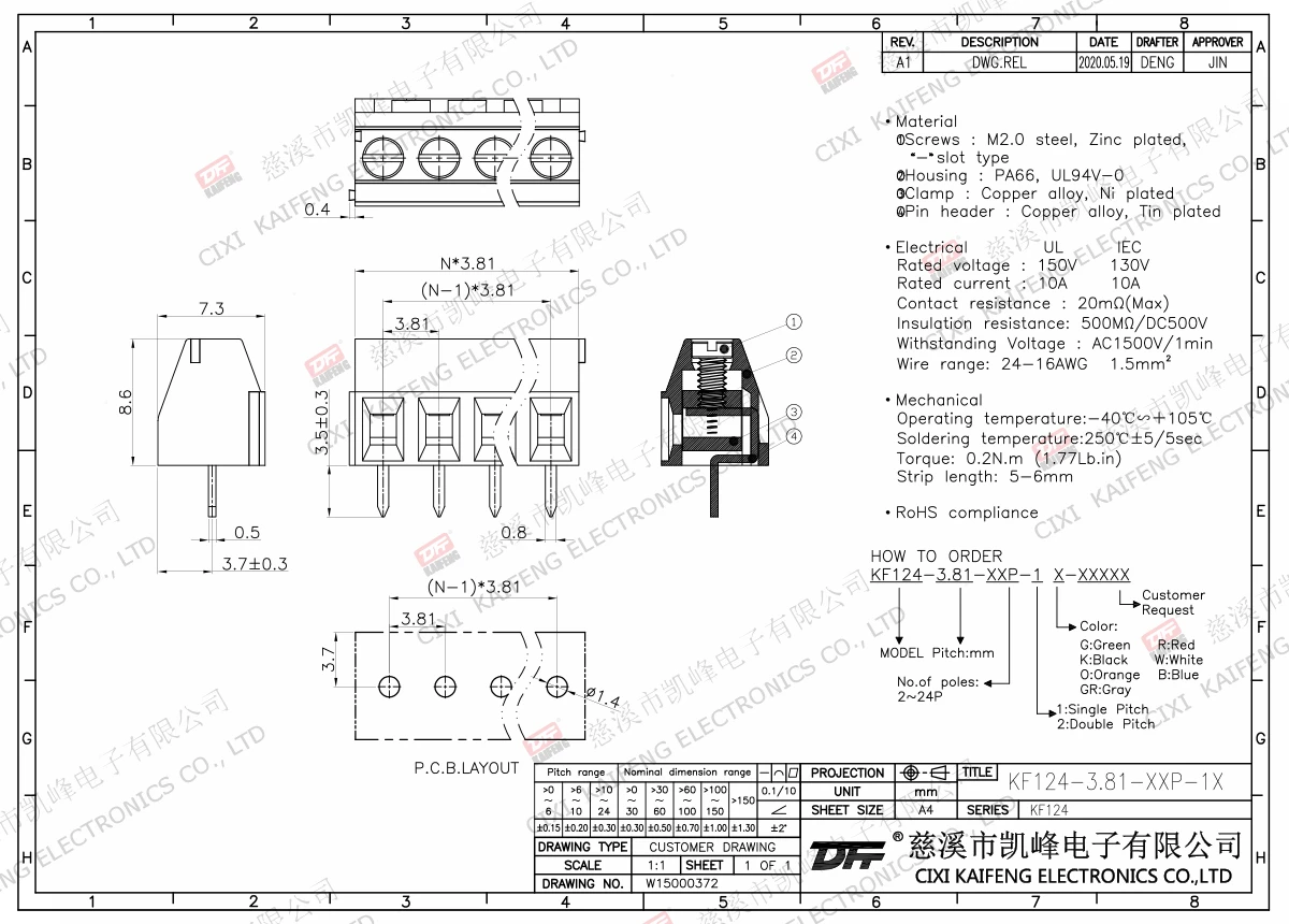 PCB Terminal Block KF124-3.81mm