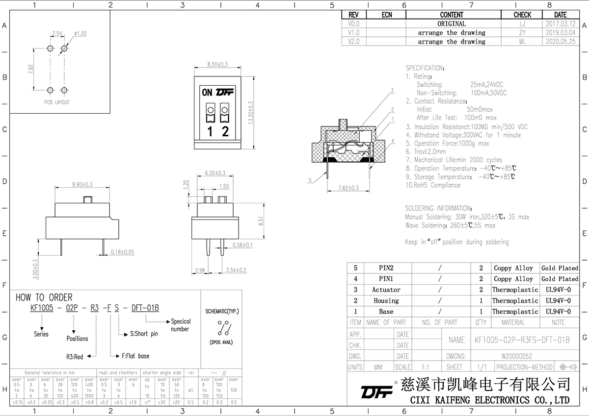 Dip Switch Material:UL94V-0 Thermoplaslic,black Cover:UL94V-0 Thermoplaslic,Red, blue, black push buttons :UL94V-0 Thermoplaslic,WhiteTerminal:Phosphor Bronze,Gold plating ElectricalElectrical life:2000 operations per switch 24VDC,25mARated