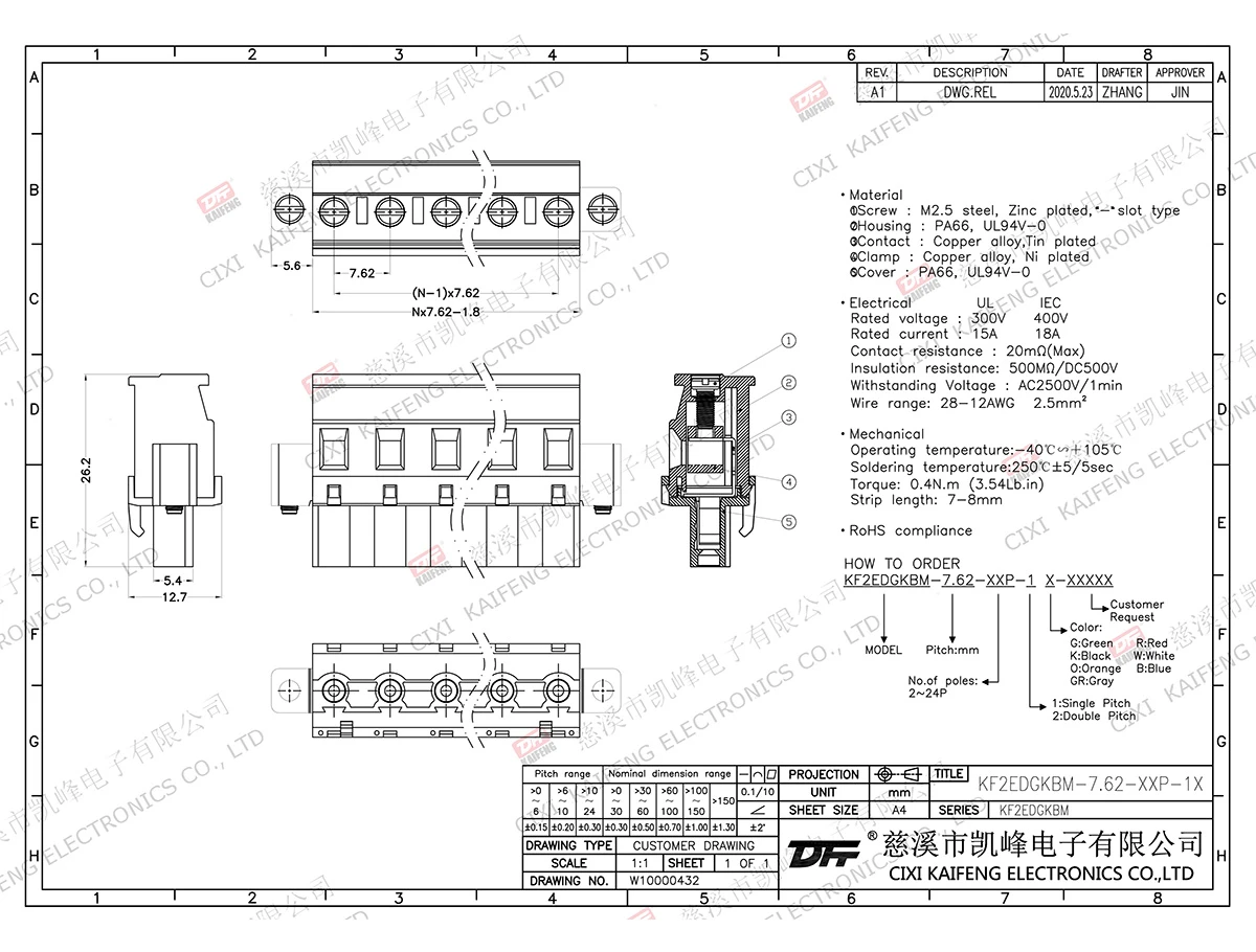 Pluggable Terminal Block KF2EDGKBM-7.62mm