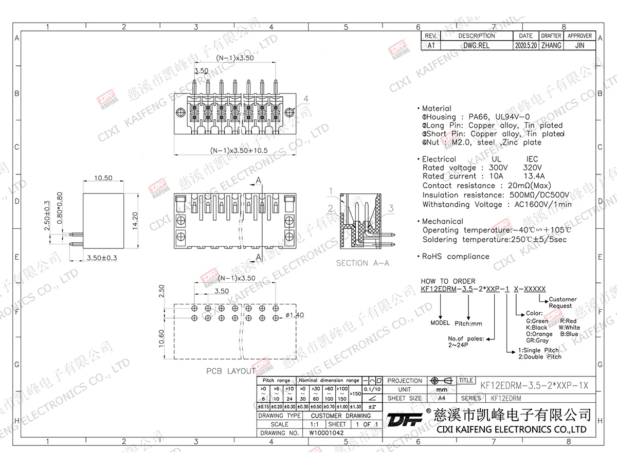 Pluggable Terminal Block MATERIAL:Latest drawing DownloadMATERIAL①Welding leg:copper alloy,Tinning②Housing : PA66,UL94V-0 ElectricalUL IEC Rated voltage150V 320V