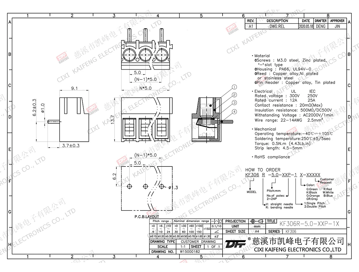 PCB Terminal Block KF306R-5.00mm