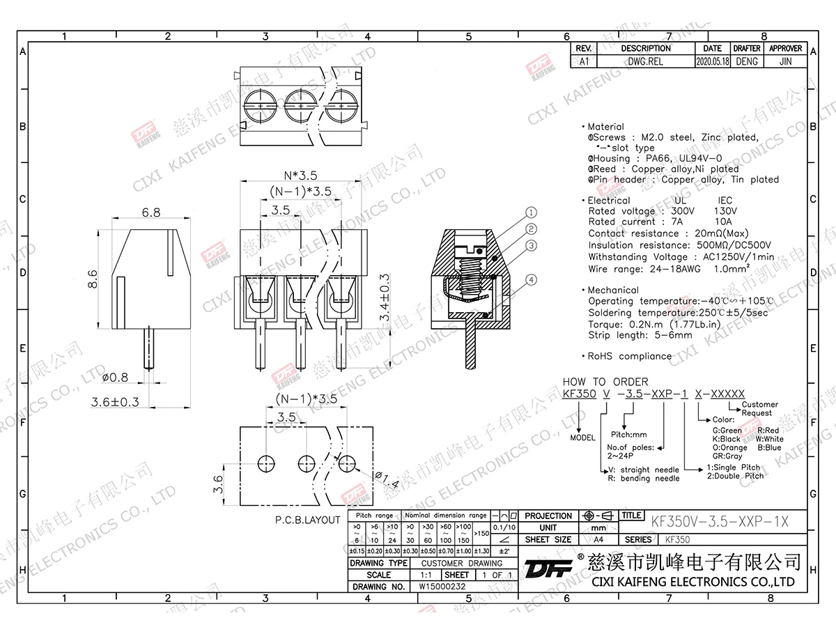 MATERIAL:①Screws : M2.0 Steel Zinc plated,"-"slot type ②Housing : PA66, UL94V-0 ③Reed : Phosphor bronze Ni plated or stainless steel