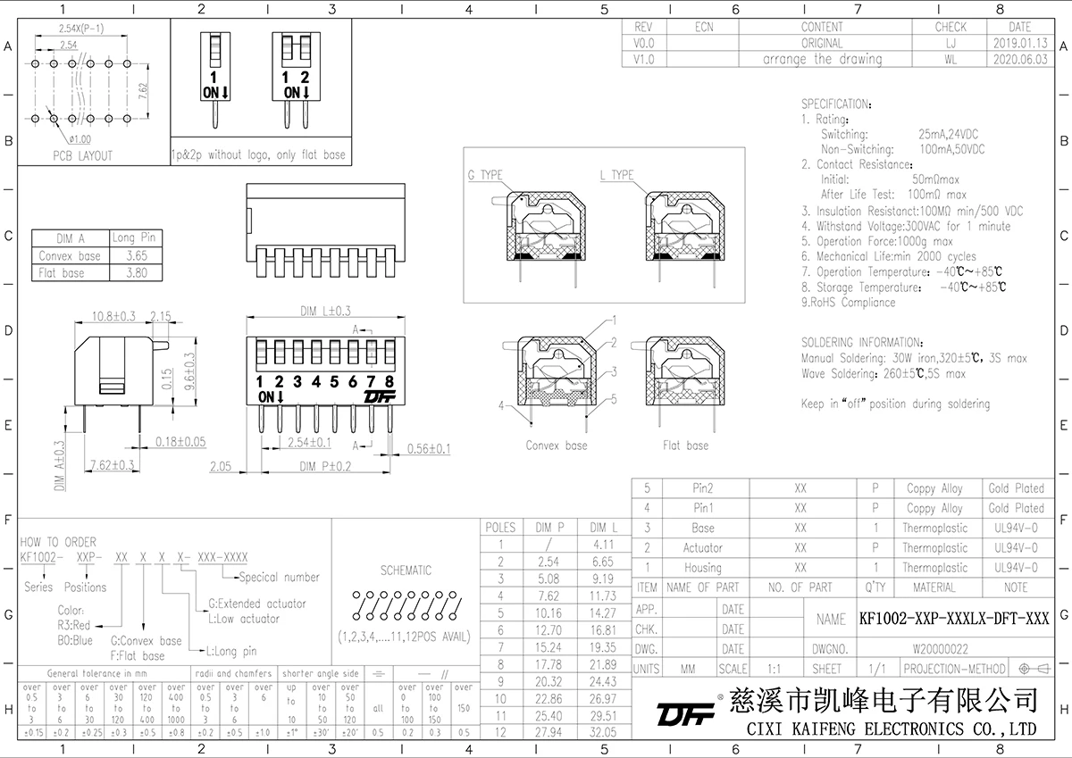 Dip Switch Material:UL94V-0 Thermoplaslic,black Cover:UL94V-0 Thermoplaslic,Red, blue, black push buttons:UL94V-0 Thermoplaslic,WhiteTerminal:Phosphor Bronze,Gold plating ElectricalElectrical life:2000 operations per switch 24VDC,25mA