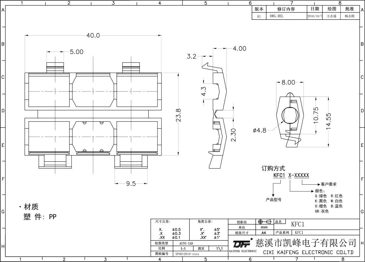 材质电镀:材质及电镀塑件:PP电气性能ULIEC额定电压--额定电流--接触电阻-绝缘电阻-耐电压-使用线径-机械性能温度范围-40℃~+105℃ 瞬时温度-扭矩-剥线长度-