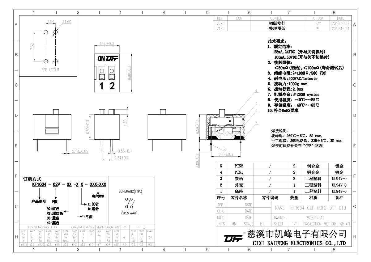 拨码开关 KF1004