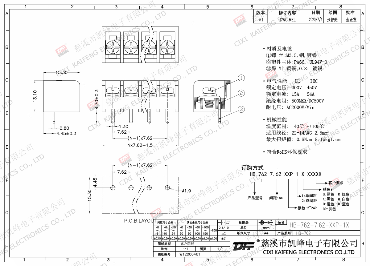 栅栏式接线端子 HB-762-7.62mm
