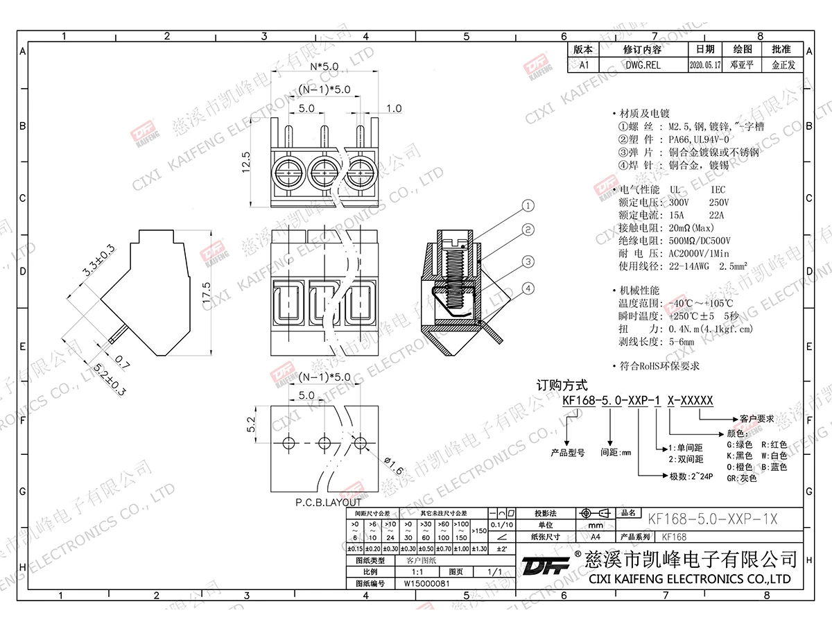 固定式接线端子 KF168-5.00mm