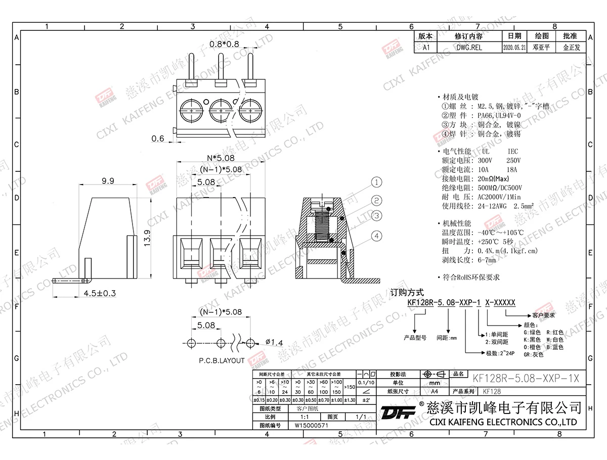 固定式接线端子 KF128R(H:13.9)-5.00mm