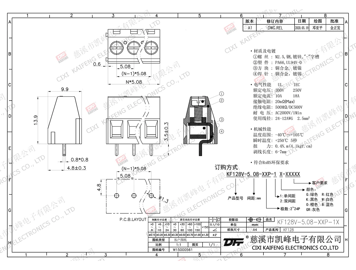 固定式接线端子 KF128V(H:13.9)-5.08mm