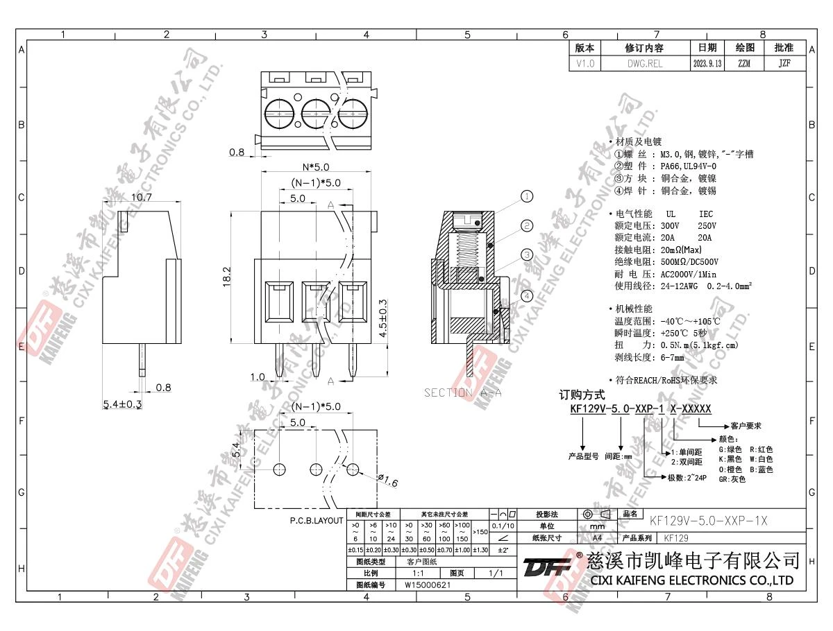 固定式接线端子 KF129V-5.00mm
