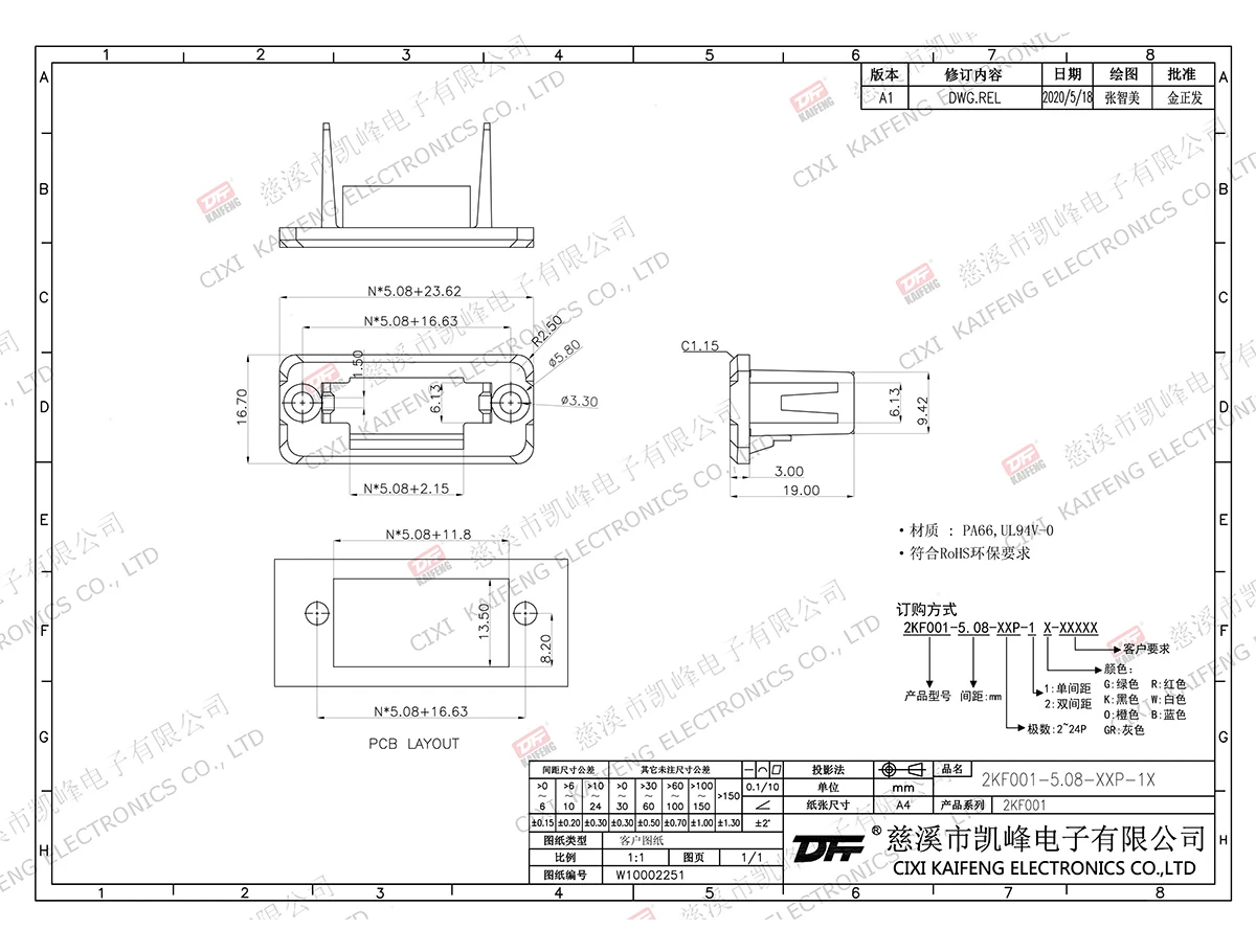插拔式连接端子 材质电镀:材质及电镀螺丝: M2.0,钢,镀锌触点: 磷青铜焊针: -塑件: PA66,UL94V-0电气性能ULIEC额定电压300V 250V 额定电流8A7A接触电阻20mΩ绝缘电阻500MΩ/DC500V耐电压AC1500V/1min使用线径28-16AWG 0.5-1.5mm²机械性能温度范围-40℃~+150℃ 瞬时温度+250℃,