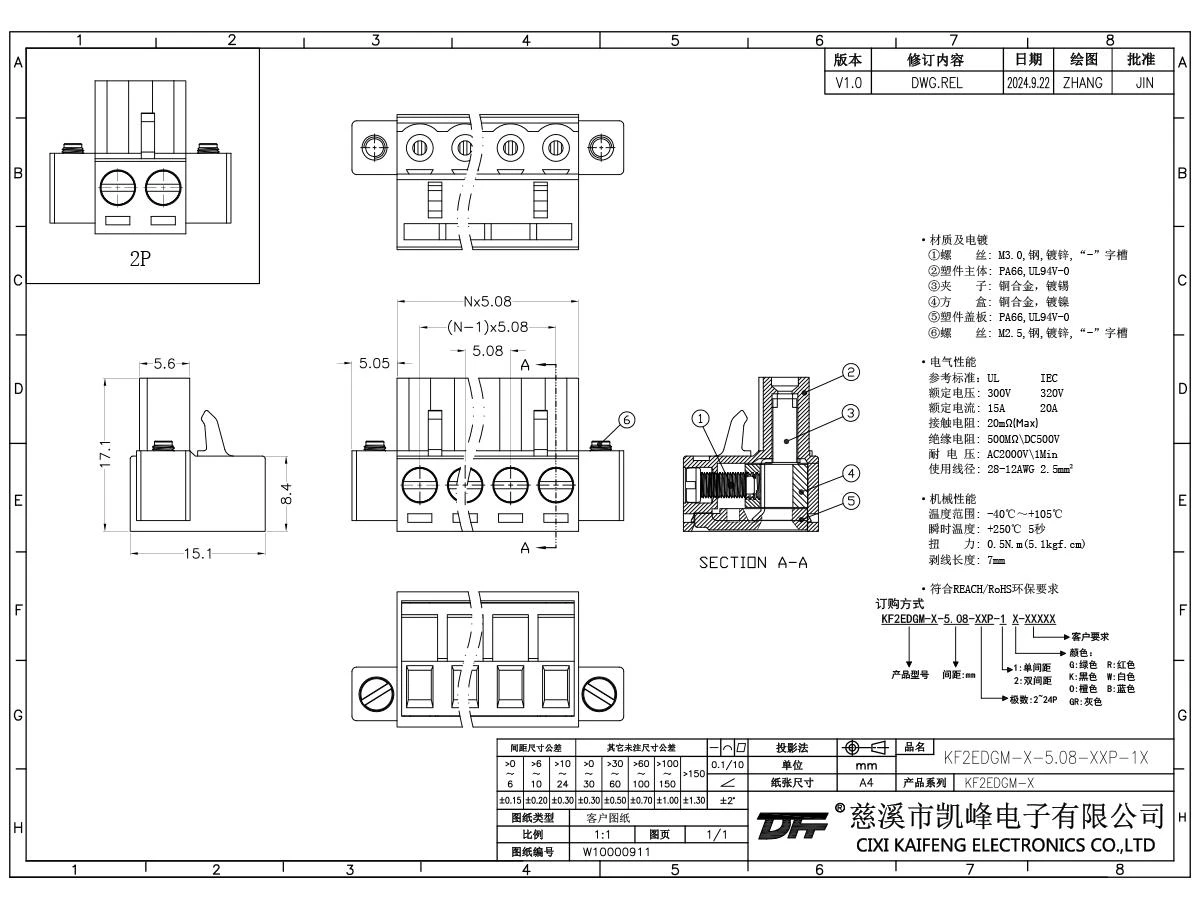 插拔式连接端子 材质电镀:M3.0 钢 镀锌 ,"一"字槽触点: -焊针:-塑件: PA66,UL94V-0电气性能ULIEC额定电压300V 320V 额定电流15A20A接触电阻20mΩ绝缘电阻500MΩ/DC500V耐电压AC2000V/1min使用线径28-12AWG 2.5㎜²机械性能温度范围-40℃~+105℃ 瞬时温度+