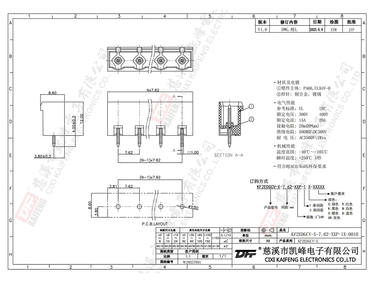 插拔式接线端子 KF2EDGCV-X-7.62mm-001H