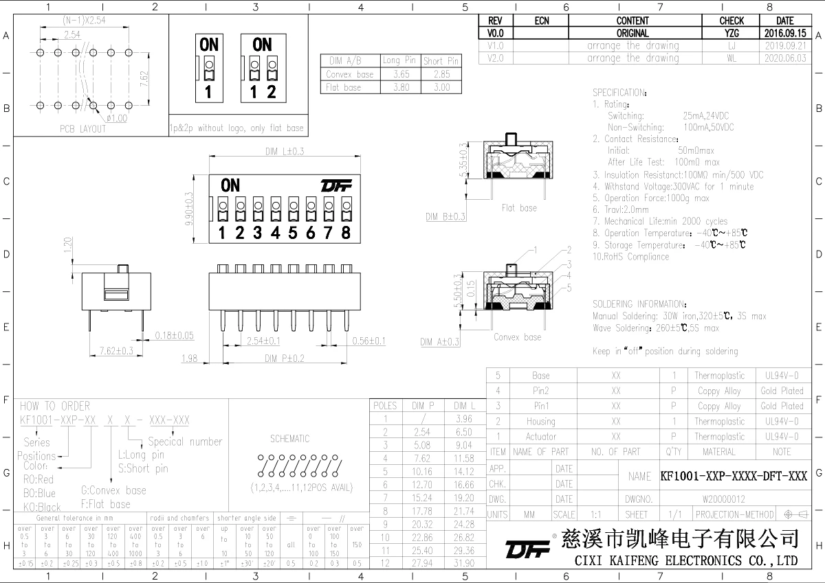 Dip Switch Material:UL94V-0 Thermoplaslic,black Cover:UL94V-0 Thermoplaslic,Red blue black push button :UL94V-0 Thermoplaslic,White Terminal:Phosphor Bronze,Gold plating ElectricalElectrical life:2000 operations per switch 24VDC,25mARated current:10