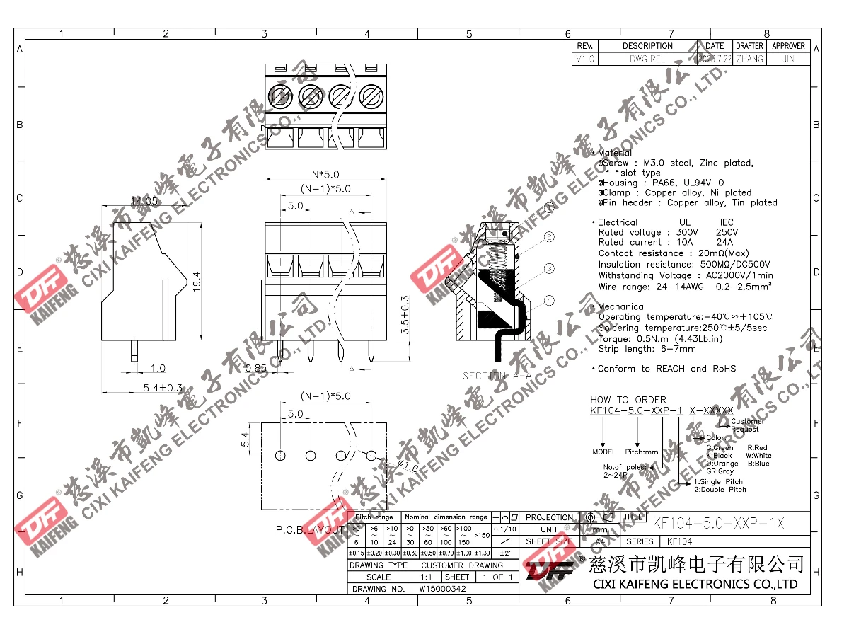 Material:①Screws : M3.0 Steel Zinc plated,"-"slot type ②Housing : PA66, UL94V-0 ③Square box :Brass,Ni plated ④Pin header : Brass, Tin plated &nb