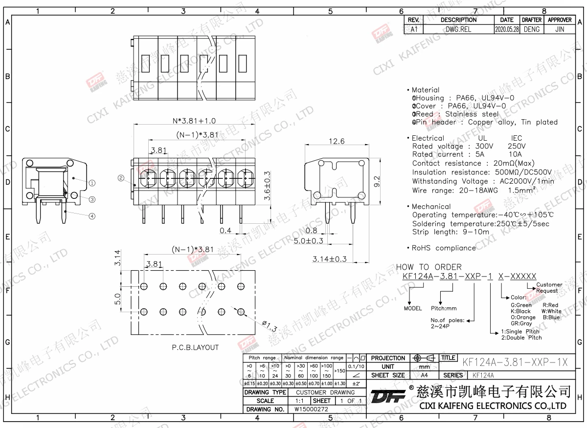 PCB Terminal Block KF124A-3.81mm