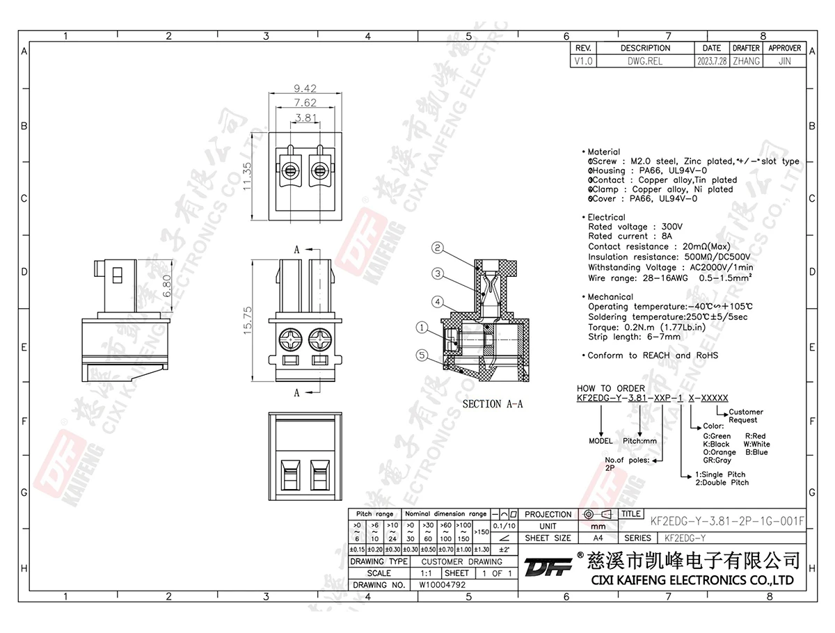 Pluggable Terminal Block KF2EDG-Y-3.81mm-001F