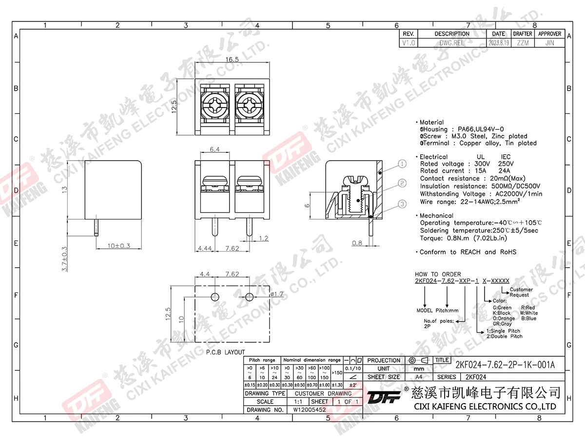 Barrier Terminal Block 2KF024-7.62mm