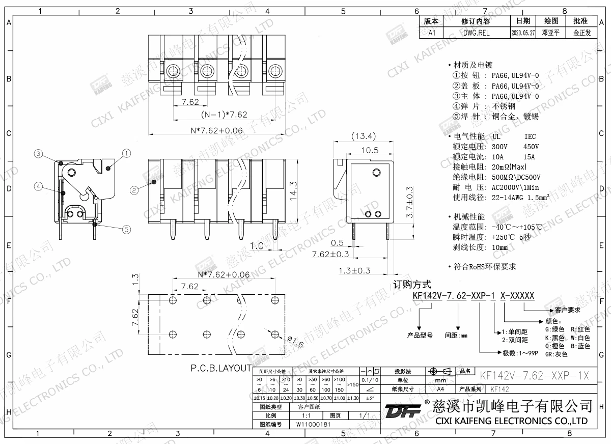 固定式接线端子 KF142V-7.62mm