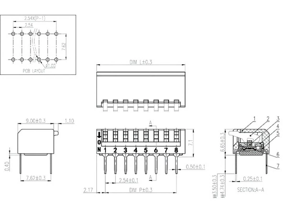 拨码开关材质电镀:UL94V-0 工程塑料,黑色 上盖:UL94V-0 工程塑料,黑色 推钮:UL94V-0 工程塑料,白色端子:磷青铜镀金 弹片:铍铜镀金电气性能电气寿命:在电压24VDC电流25mA之下测试,可来回拨动2000次开关不常切换的额定电流:100mA , 耐压50VDC开关经