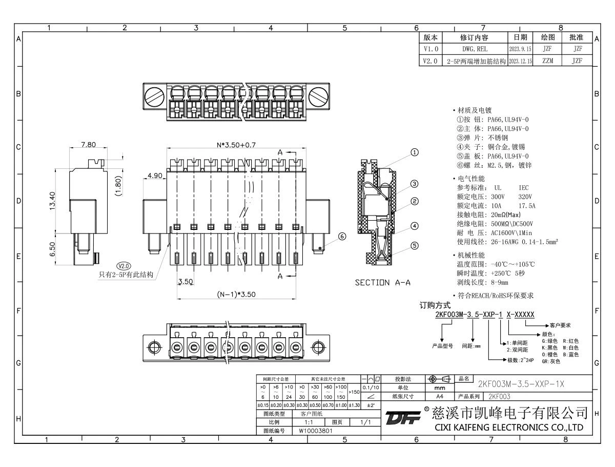 插拔式连接端子 材质电镀:①螺丝:钢,镀锌②弹片 : 不锈钢③夹子 : 磷青铜 ④按钮 : PA66,UL94V-0 ⑤塑件 : PA66,UL94V-0 电气性能UL IEC &n