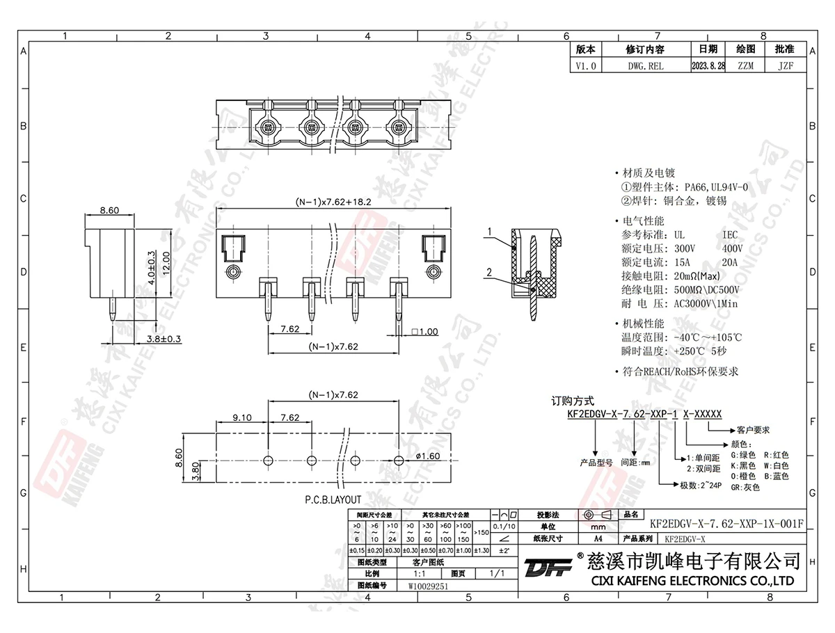 插拔式接线端子 KF2EDGV-X-7.62mm-001F