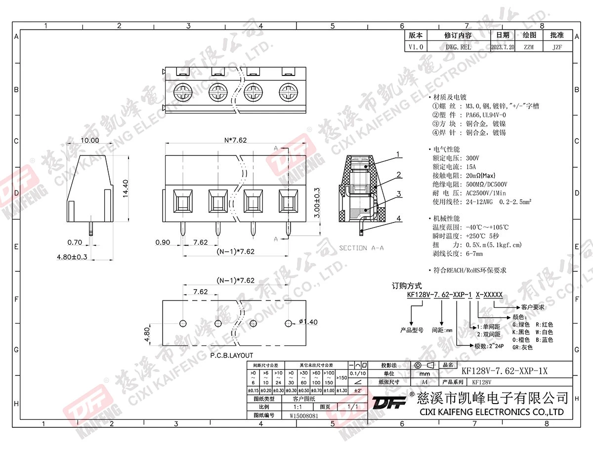 固定式接线端子 KF128V-7.62mm